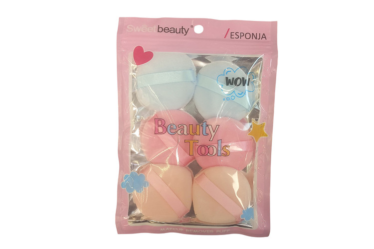 بافت پد آرایشی پنکک و پودر فیکس Sweet Beauty بسته 6 تایی، مخملی، نرم و لطیف بوده که برای پخش کردن پنکک و پودر فیکس مناسب است. با کمک این پد می توان، عیوب و نقایص پوست را پوشاند و یکدست نمود.