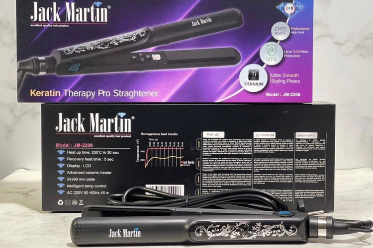 اتو موی جک مارتین مناسب موهای کراتین شده مدل JM-2208 تنها اتوی کراتینه شرکت جک مارتین می باشد و تفاوت این اتو با سایرین در این است که این اتو صفحات سرامیکی را با پوشش نانو کراتین دارد که صافی بهتر و ماندگارتر را با آسیب کمتر ارائه می دهد. همچنین این اتو گزینه بهینه برای کار با مواد کراتینه در مصارف حرفه ای می باشد. صفحات سرامیکی برای سلامت مو مناسب تر هستند. زیرا سرامیک ها عایق الکتریکی و مقاوم در برابر حرارت هستند. به این ترتیب میزان الکتریسیته ای که از طریق مو منتقل می شود و در هنگام استفاده از اتو خطر ایجاد می کند، کاهش می یابد. زیره های سرامیکی به دلیل مقاومت در برابر حرارت دیرتر فرسوده می شوند و در نتیجه طول عمر بیشتری دارند. علاوه بر این، گرمای ایجاد شده در زیر کفی سرامیکی به خوبی روی سطح سرامیک پخش می شود و آن را داغ می کند. این عامل انتقال یکسان حرارت را به تمام موها در طول اتو تضمین می کند.